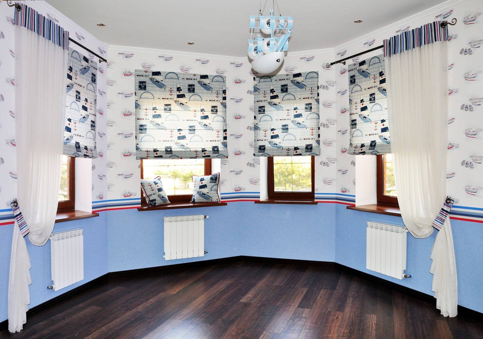 Отдельная тема шторы для детской в морском стиле – месте в доме, где разгуляться воображению уже точно ничего не мешает.