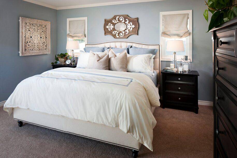 - Комната должна выполнять свои основные функции. Спальня — место для релакса и отдыха, выбирайте такие сочетания, которые не будут мешать расслабляться, отдыхать душой и телом.