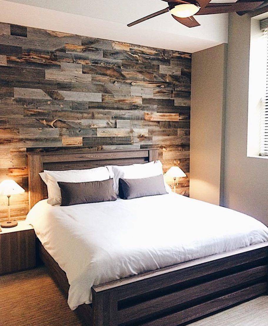 Работая над выделением зон в комнате можно использовать не только обои или штукатурку. К примеру, изголовье кровати можно сделать панелями или дерева или пластика, а также тканевой обивкой.