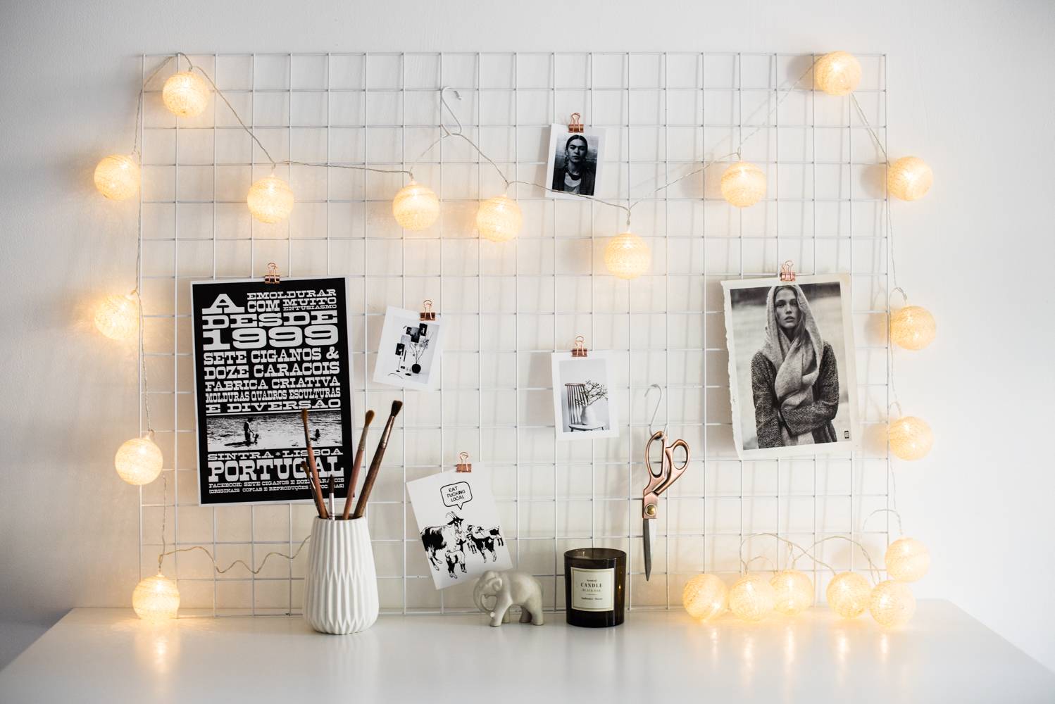 На фото световая гирлянда над рабочим местом