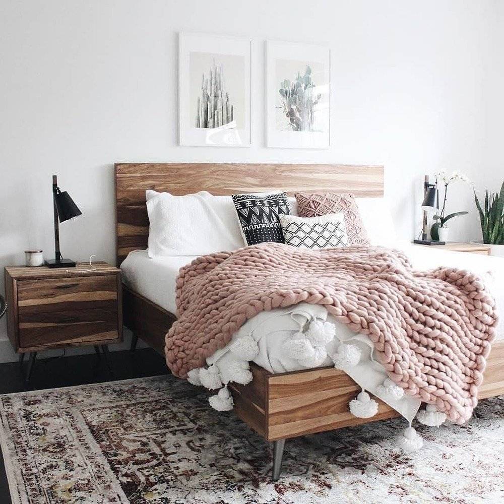 Чтобы создать в спальне скандинавское настроение необходимо использовать: