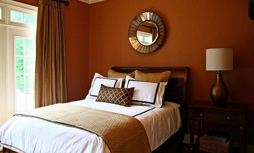 Придаст спальне тепло и уют. Создаст ощущение безопасности и единения с природой. Сочетать можно со всей цветовой палитрой, но традиционно его используют вместе с белым.