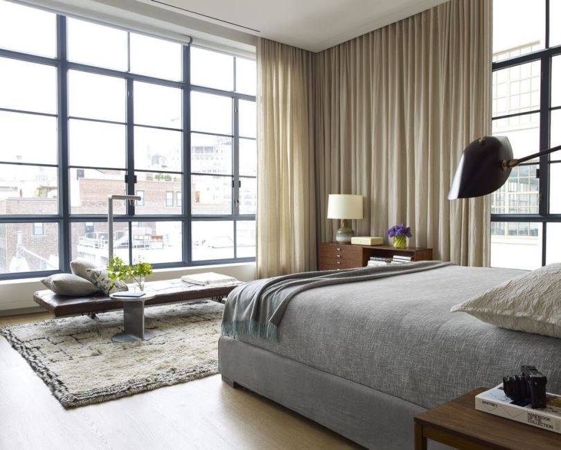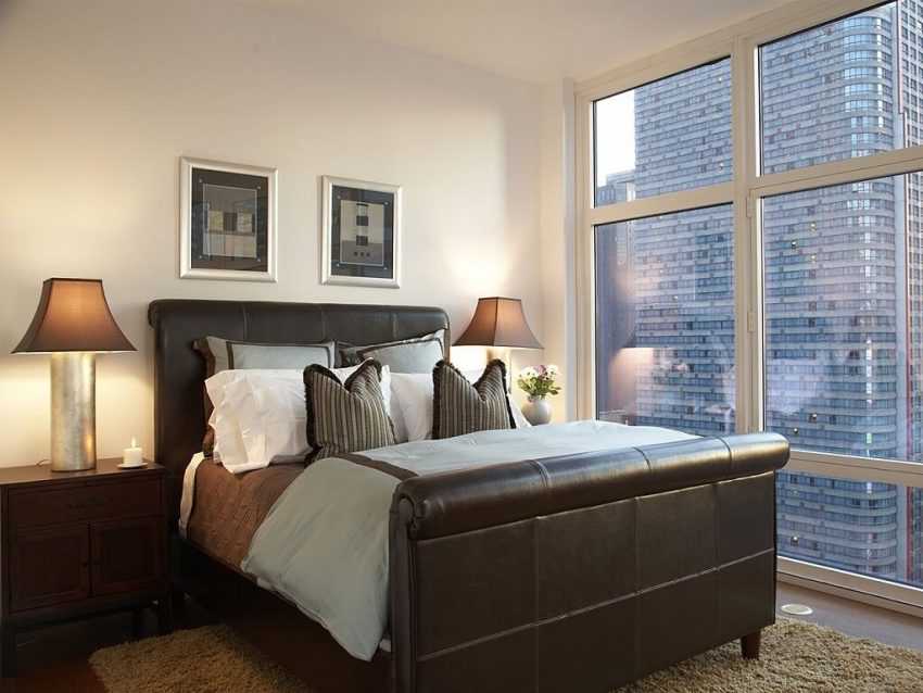 На фото спальная комната с большим окном