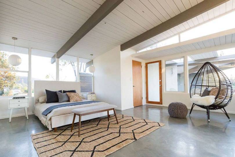 Первое достигается за счет открытых окон и искусственной подсветки, второе — за счет большой удобной кровати, подушек и одеял, в основе третьего — льняное или хлопковое постельное белье, тумбы из натурального дерева или столики из слэба.