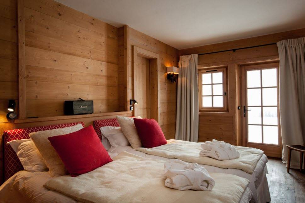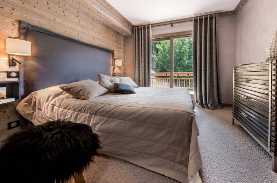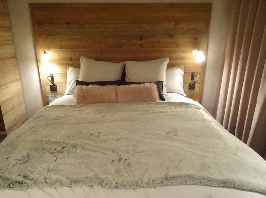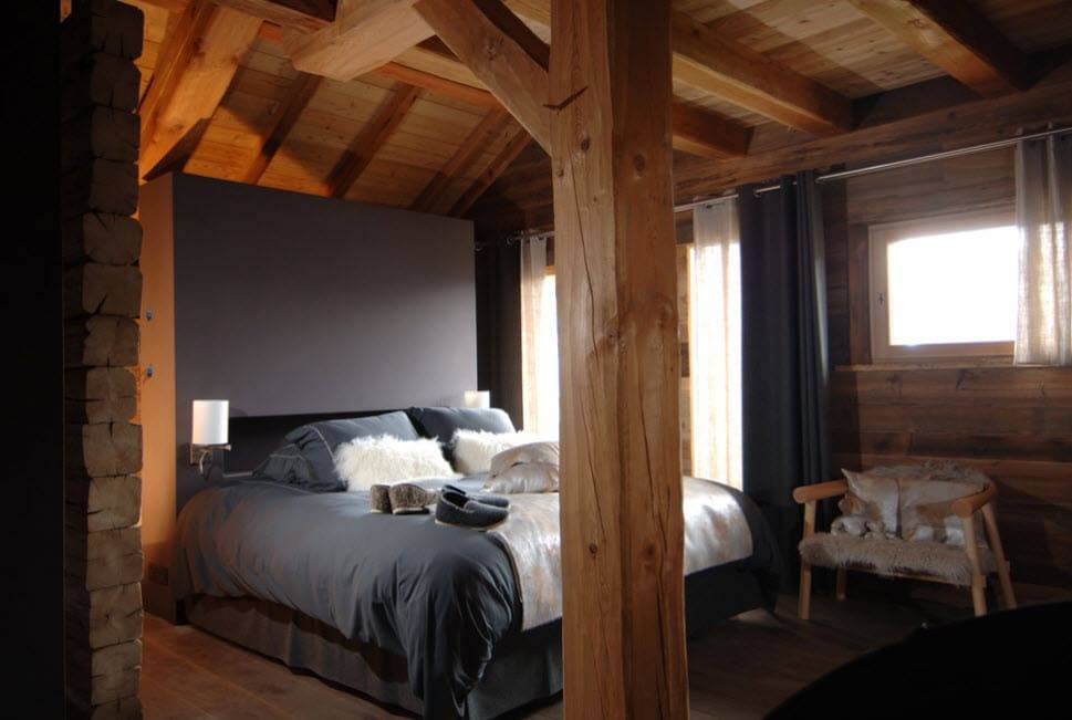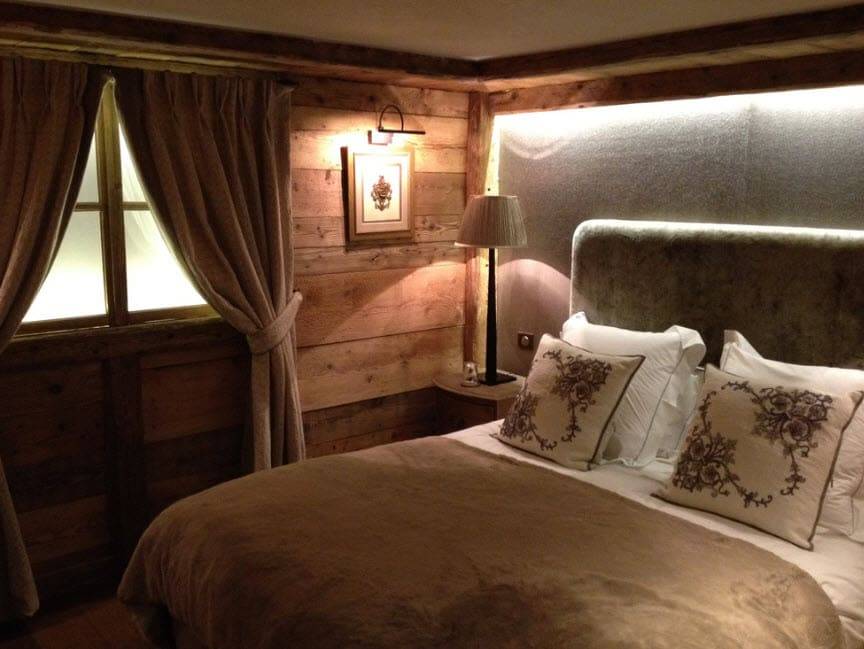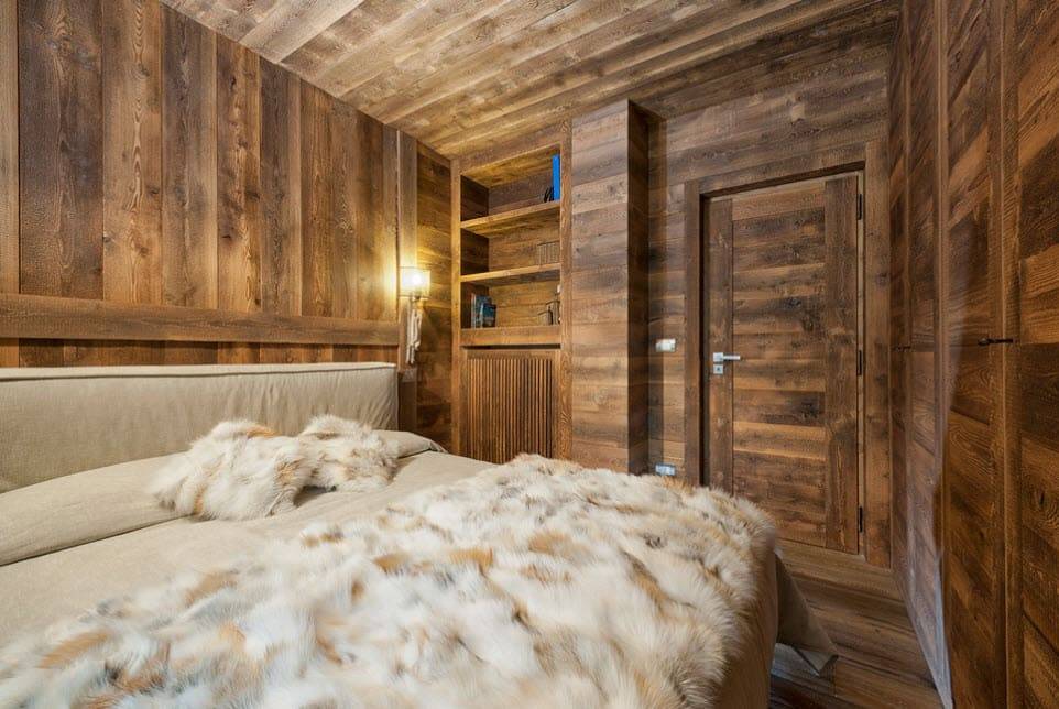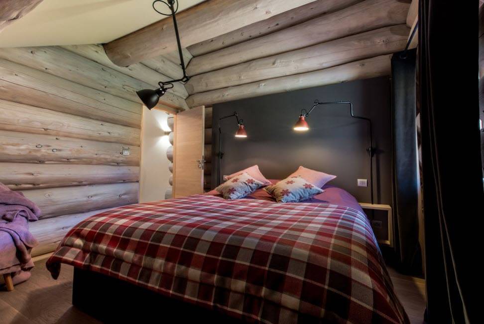 Уютный и натуральный альпийский стиль шале в интерьере спальни
