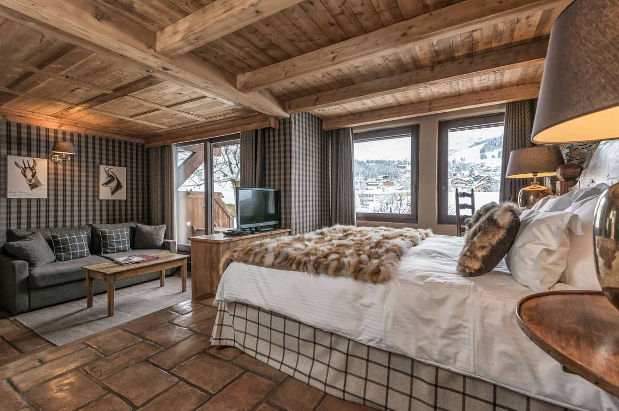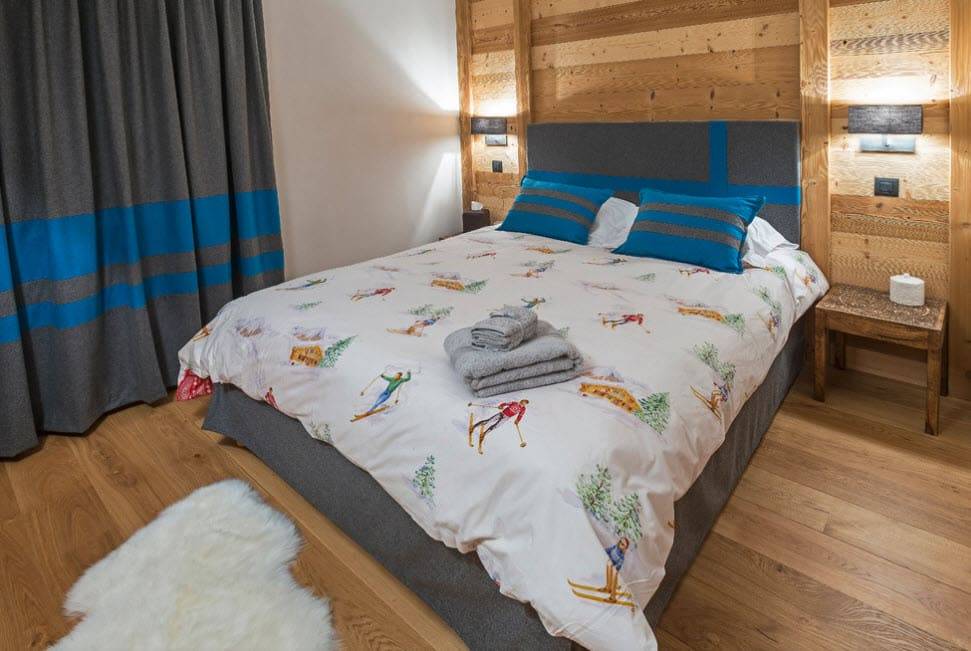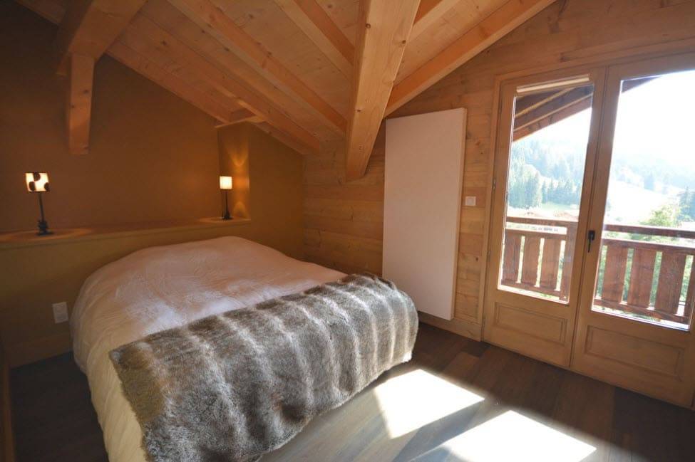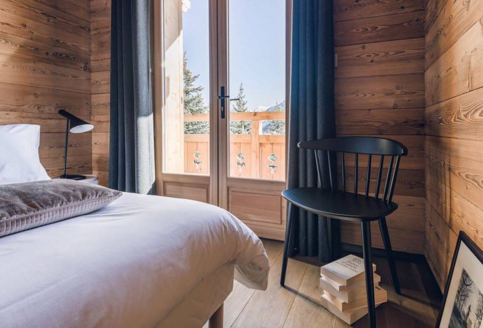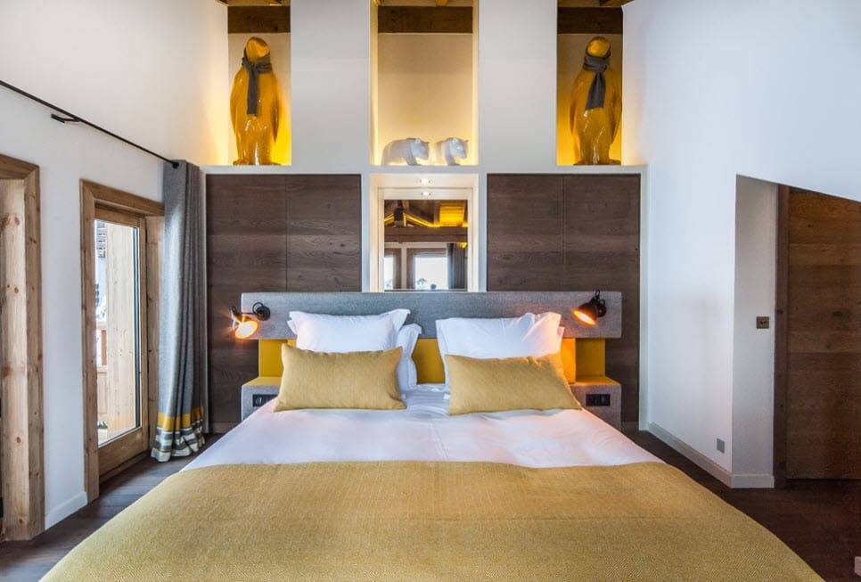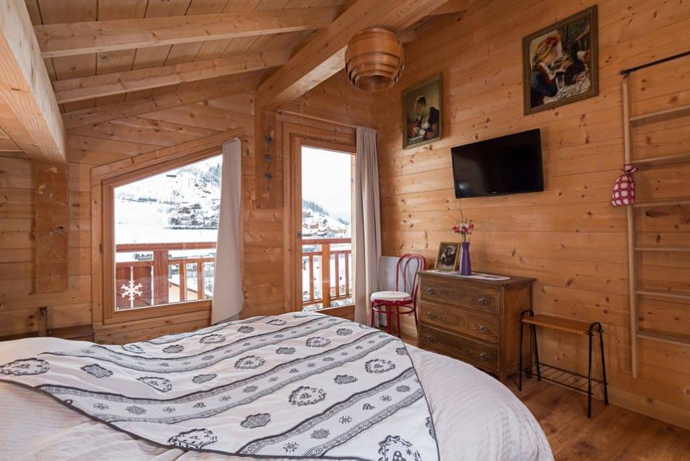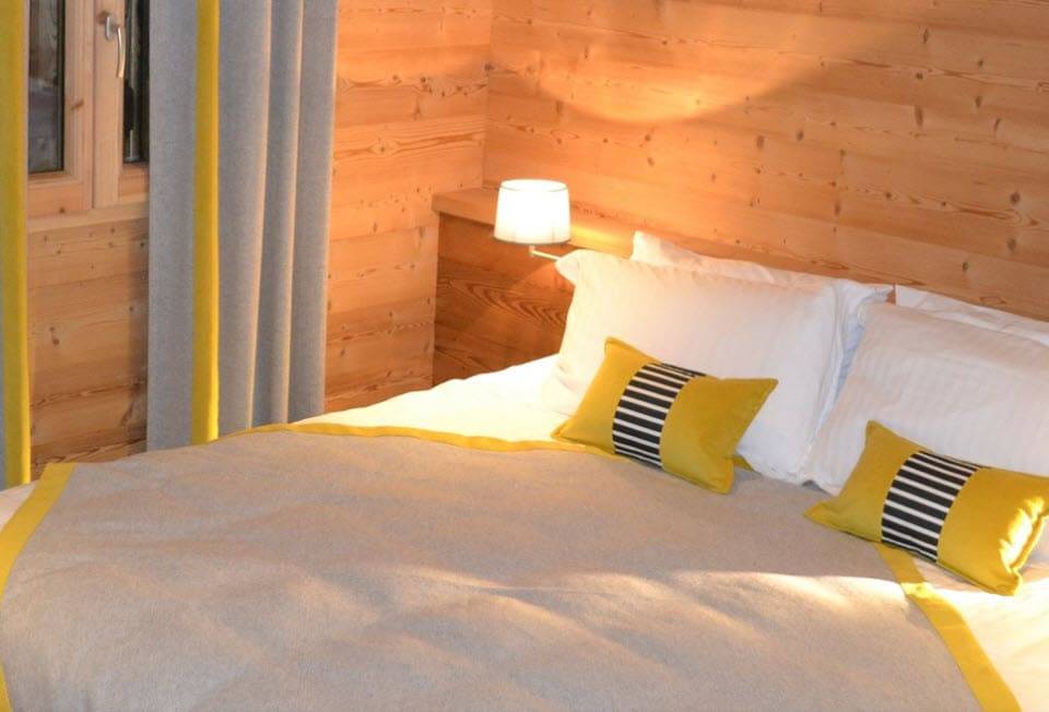 Уютный и натуральный альпийский стиль шале в интерьере спальни