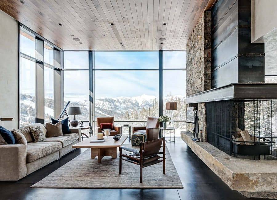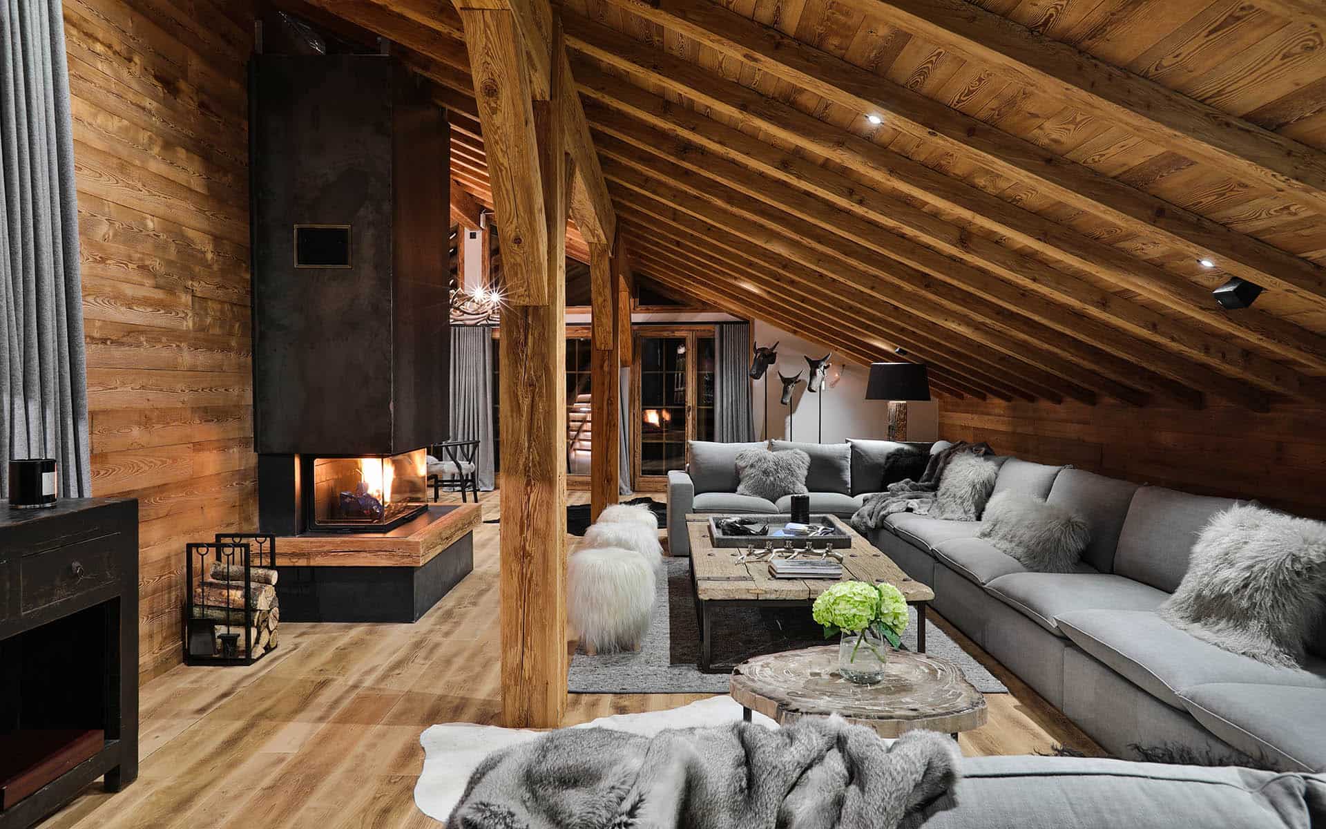 Дизайн интерьера в стиле шале с минимальным набором мебели