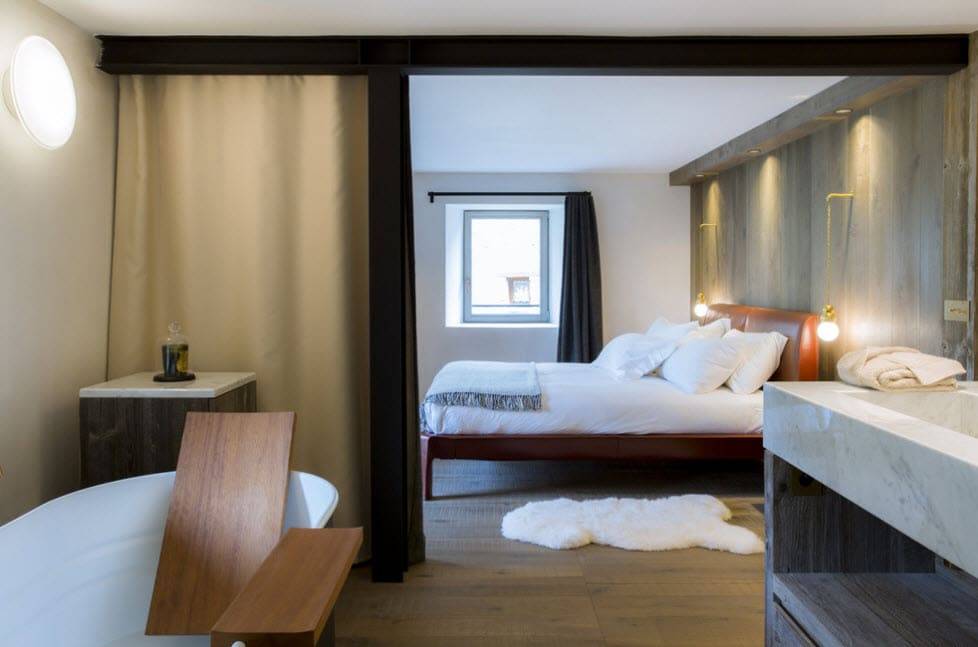 На заметку! Создавая интерьер спальной комнаты в стиле шале можно дополнять его чертами других стилевых решений, например, лофта. Оригинальное сочетание стилей придаст помещению запоминающийся вид.