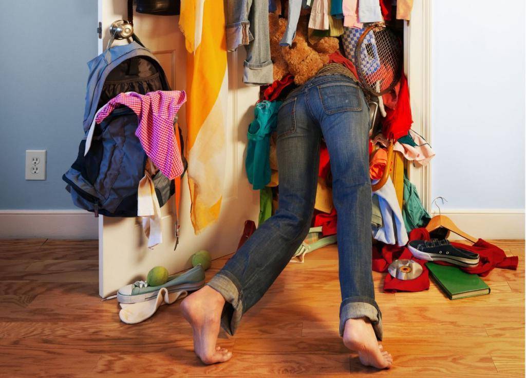 Большую часть хлама представляет старая, поношенная или не подходящая по размеру одежда, которой наполнены шкафы и комоды, поэтому начинать расхламление следует с разбора гардероба