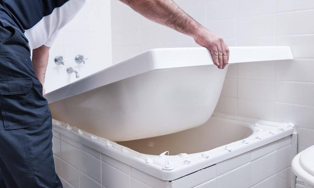 При использовании вкладыша вам не нужно шлифовать, а затем покрывать ванну красящим составом. Достаточно просто прикрепить акриловый вкладыш к подготовленному покрытию с помощью монтажной пены. Фактически вы устанавливаете новую ванну, используя старую в качестве каркаса.
