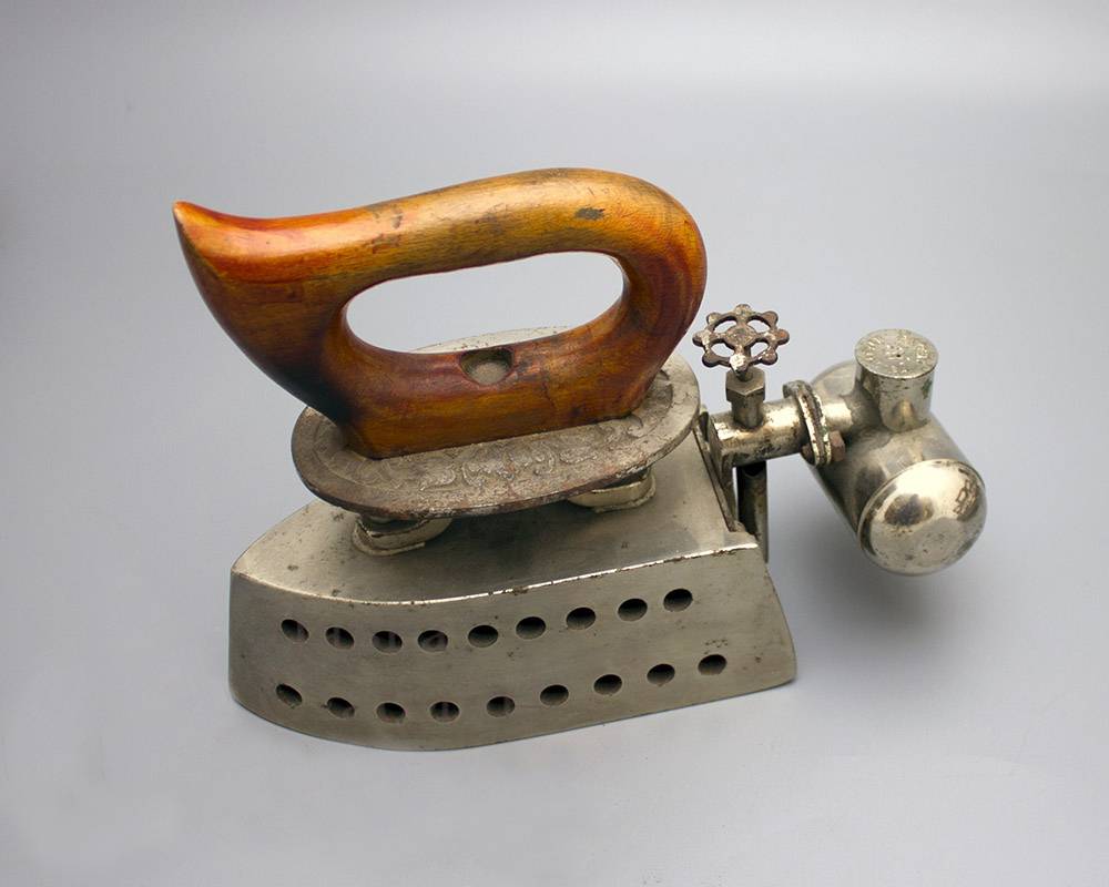 В доэлектрическую эпоху, помимо утюгов твердотопливных (на угле) и с внешним источником тепла (цельнолитые, нагреваемые на плите) существовали жидкотопливные утюги.
