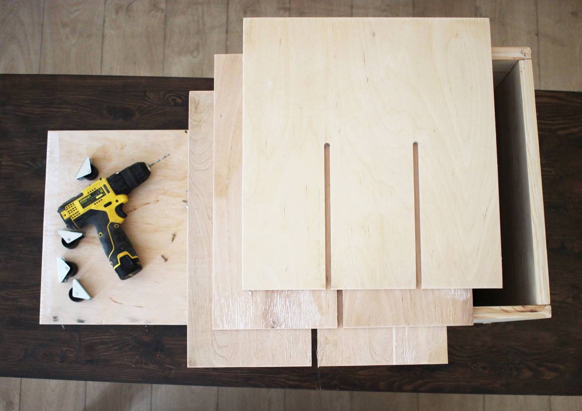 - К прямоугольному каркасу последовательно прикрепить столешницу, боковые, задние и фронтальные стенки.