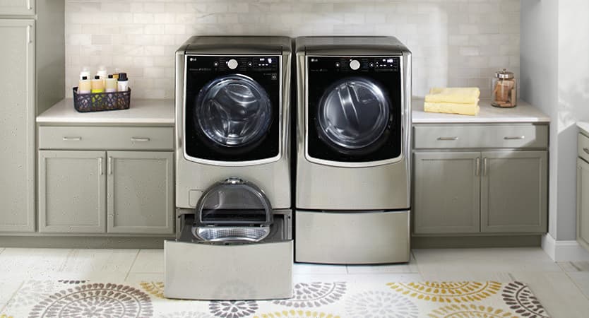 Ещё одной новинкой с дополнительным загрузочным баком стала новая модель от бренда LG. Twin Wash несколько отличается от предыдущей модели. Основной бак размещается в корпусе по типу машинок с фронтальной загрузкой. Дополнительный бак «спрятан» в выдвижной платформе.
