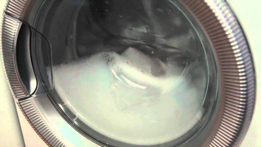 Из-за активного перемешивания воды, воздуха и стирального порошка происходит полное растворение моющего средства