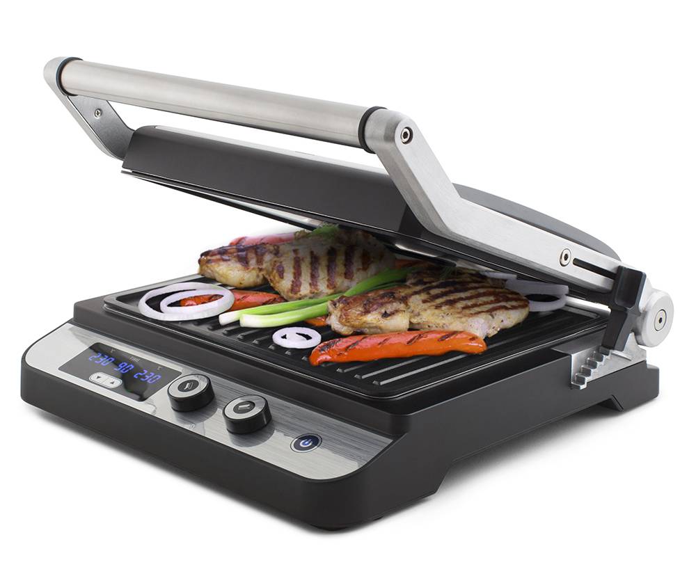 Tefal Optigrill Elite GC750D30 – это очень многофункциональный гриль, который предлагает большое количество разнообразных возможностей. Здесь есть функция приготовления замороженных продуктов, функция зажаристой корочки и еще много других. Толщина продукта определяется автоматически, чтобы задать правильную прожарку. Это умный гриль, который отлично справляется с автоматическими программами. Достаточно положить в него продукты, а затем забрать их после звукового сигнала. При этом легко добиться нужной степени готовности, просто подобрав правильную программу. Последнее очень просто делается при помощи удобной электронной панели управления.