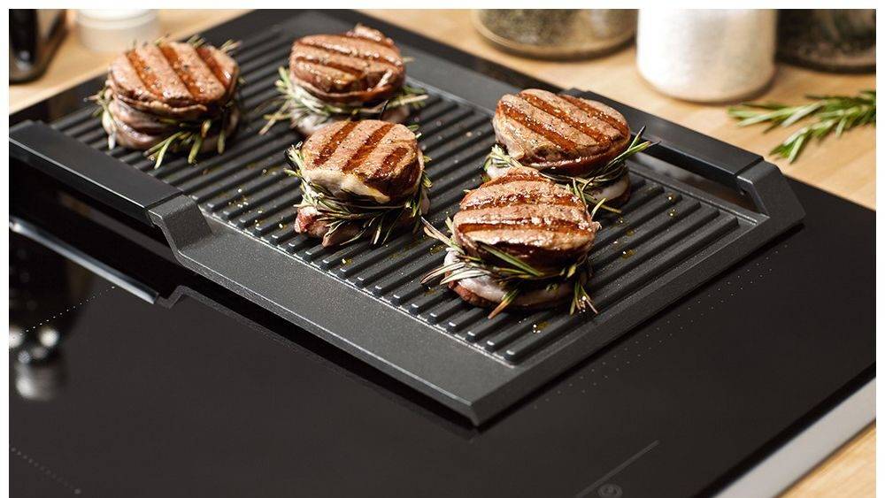 Чтобы приготовить на гриле блюдо, максимально похожее на приготовленное на углях, лучше всего взять решетку с открытой спиралью. Только в этом случае устройством следует пользоваться под мощной вытяжкой. Специалисты советуют брать такие приборы с чугунной поверхностью. А вот алюминиевое покрытие не способно выдержать высокие температурные воздействия – есть риск, что блюдо не будет достаточно прожарено (например, стейк).
