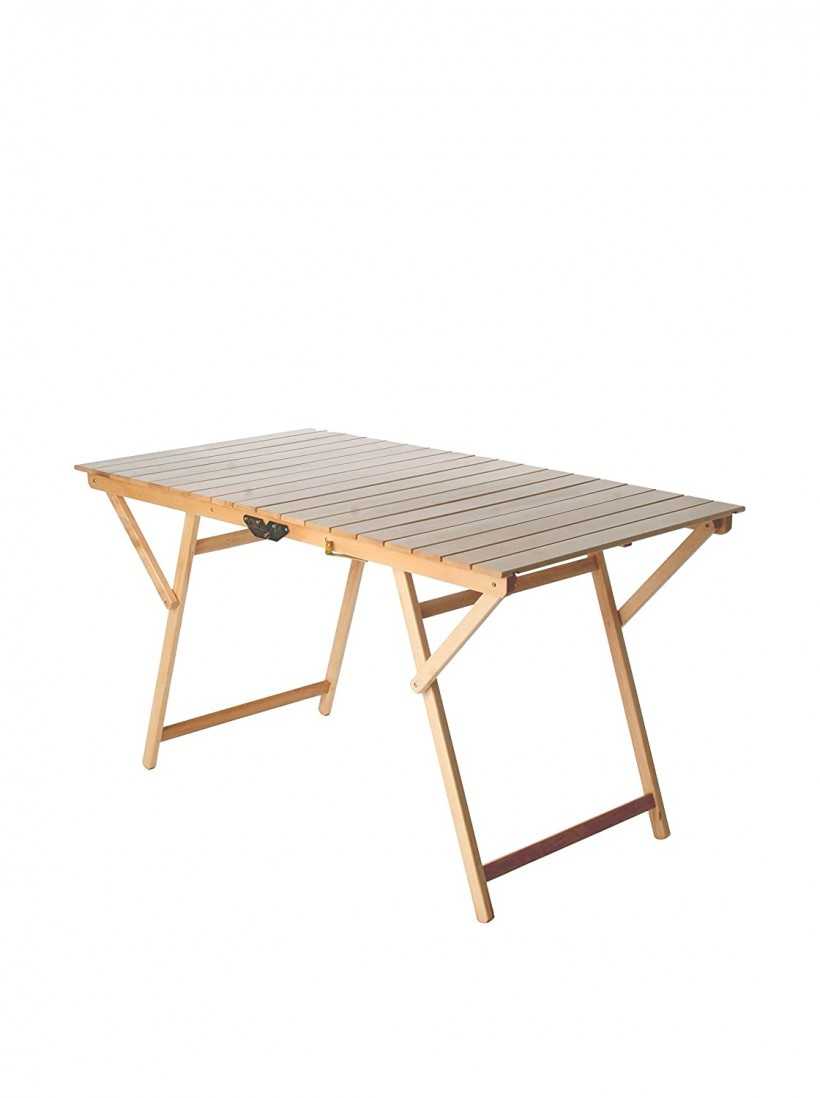 Столик подобного типа несложно смастерить из деревянных или алюминиевых заготовок. Он получится легким и удобным в применении.