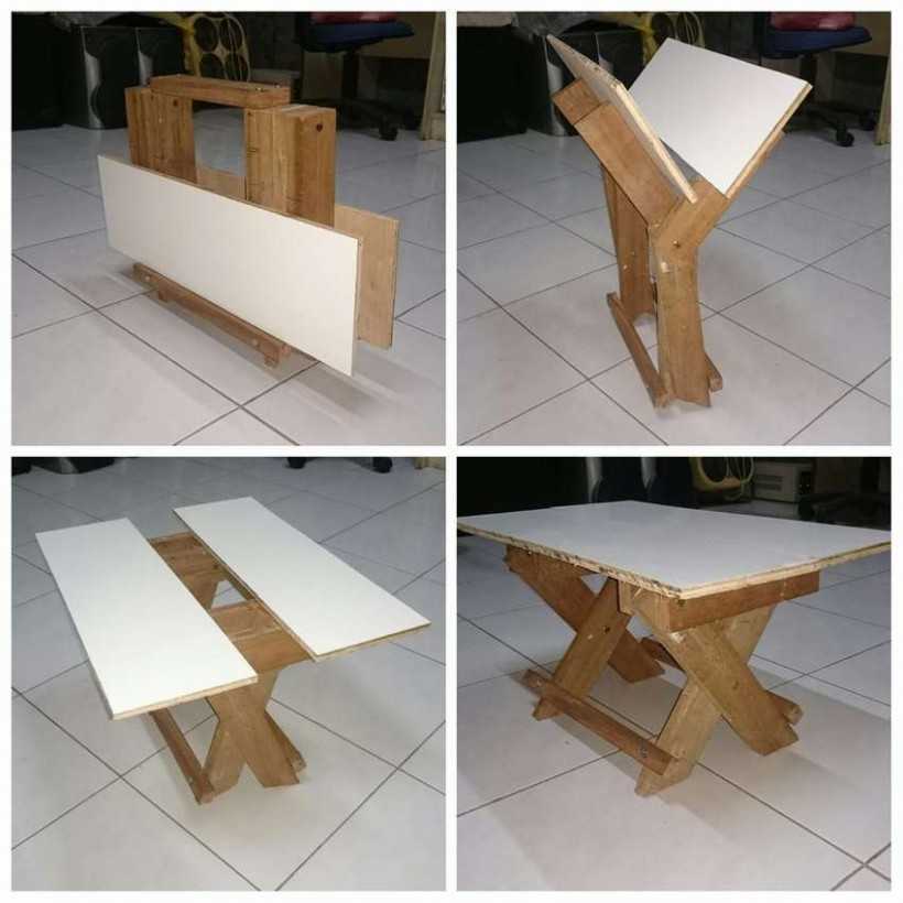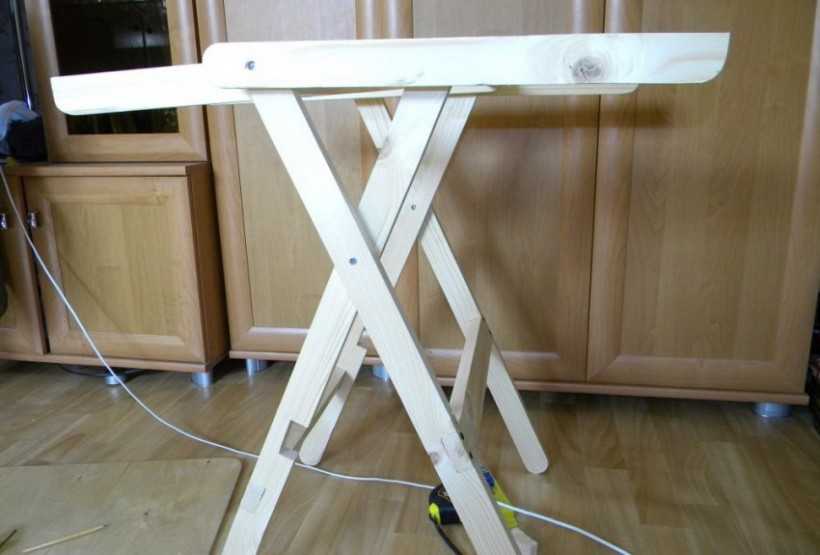 - Схема изготовления складного столика независимо от конструкции включает в себя этап подготовки деталей, их соединение в конструктивные элементы с последующим монтажом всей конструкции.