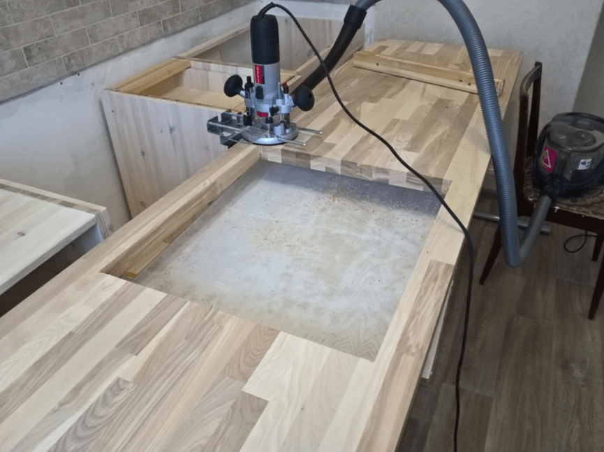 - выбрать поверхность — сруб или готовая столешница, купленная ранее.