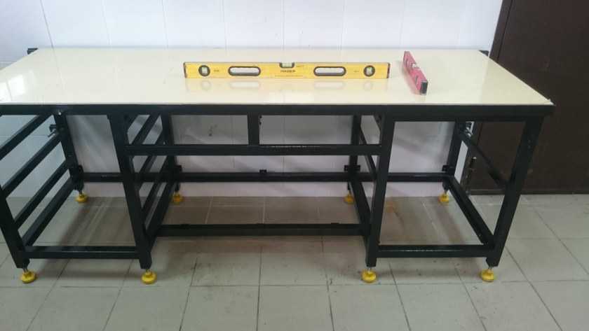 По материалу, из которого изготовлен рабочий стол для обработки материалов, различают: