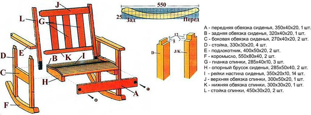 Конструкция и деталировка детского кресла-качалки