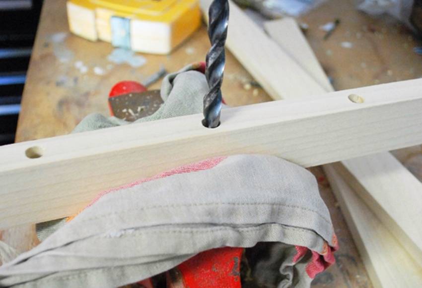 Необходимо сложить деревянные брусья конструкции наподобие рамы и соединить их гвоздями