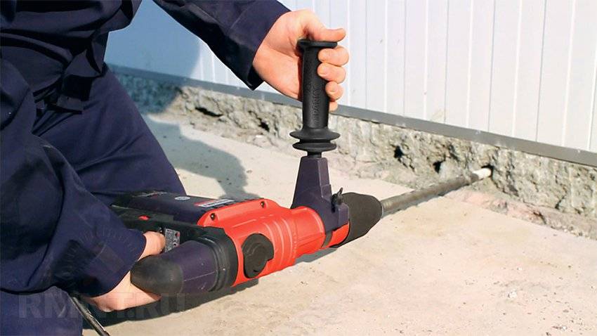 Перфоратор способен не только сверлить, но и совершать мощные удары высокой частоты. Это позволяет ему отчасти заменять отбойный молоток и проделывать особой пикой штробы и большие выемки в бетоне. Им удобно дробить кладку и удалять старую керамическую плитку.