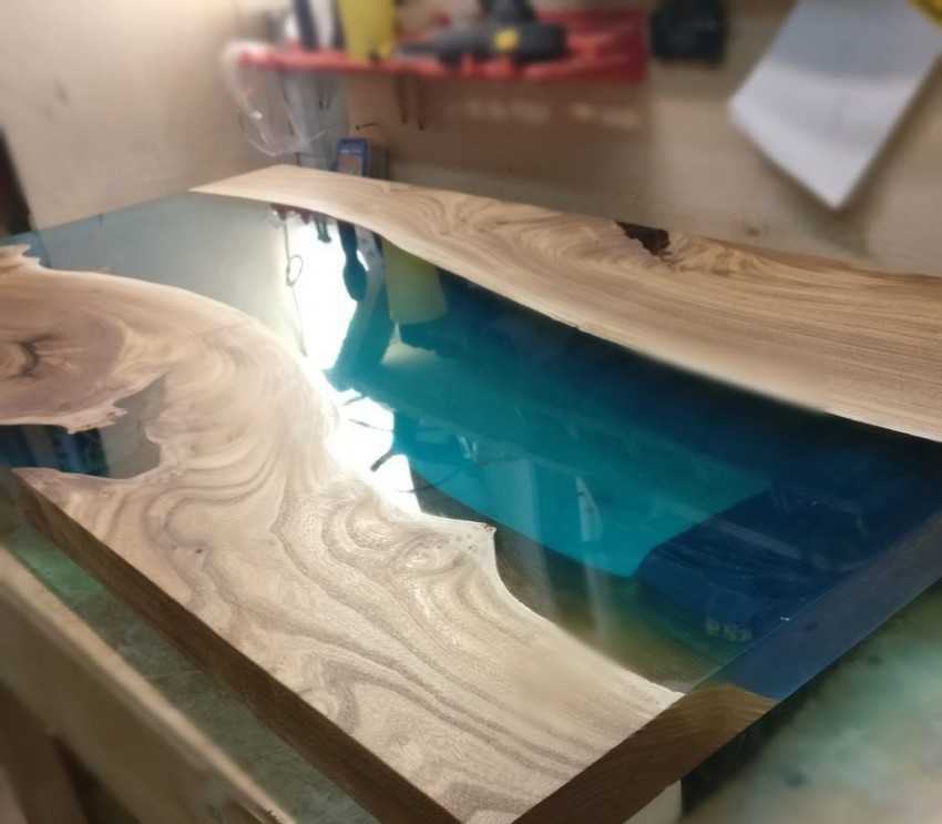 Для изготовления стола эпоксидная смола и дерево должны быть правильно выбраны. Не стоит отдавать предпочтение слишком дешевым составам, так как они быстро мутнеют и желтеют. Лучшим типом эпоксидки на стол является CHS Epoxy 520. Продается она обычно сразу с отвердителем. Смешивать эти вещества необходимо в пропорциях, указанных в инструкции.