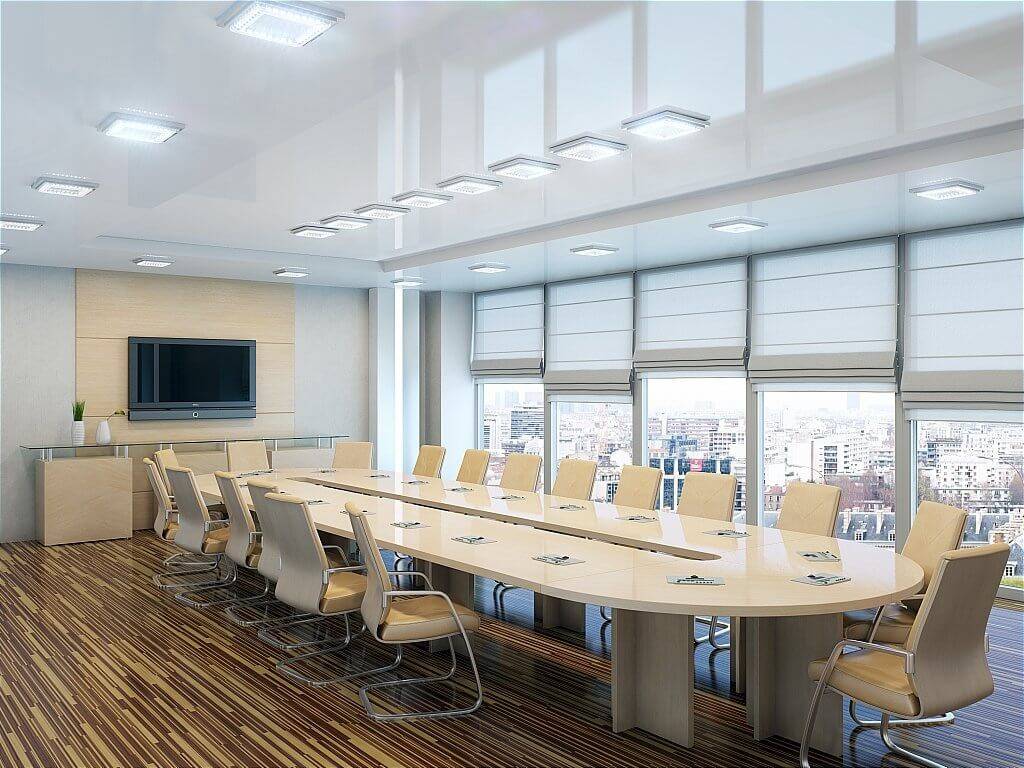 Эстетичность проявляется в соответствии ламп дизайну офиса, отделке помещений.