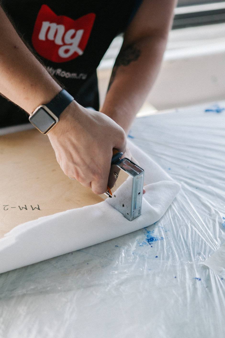 Как выбрать механический мебельный степлер – это тема для отдельного разговора, но допустим, что вы уже определились с моделью. После того, как Вы подобрали обивочный материал и подходящие крепежные элементы, нужно сначала закрепить поролон, а потом обивку. Чтобы все получилось аккуратно с первого раза, и не пришлось ничего переделывать, нужно знать несколько важных нюансов.