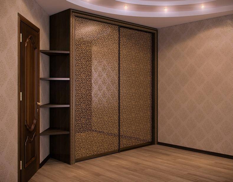 Дизайн шкафа-купе 2021 с цветным стеклом и фигурными вставками