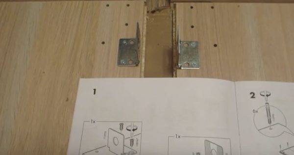 Шаг пятый: теперь на нижней части гардероба необходимо закрепить шайбы с резьбой (как показано на изображении). Они нужны для того, чтобы потом вкрутить в них ножки с упорами.