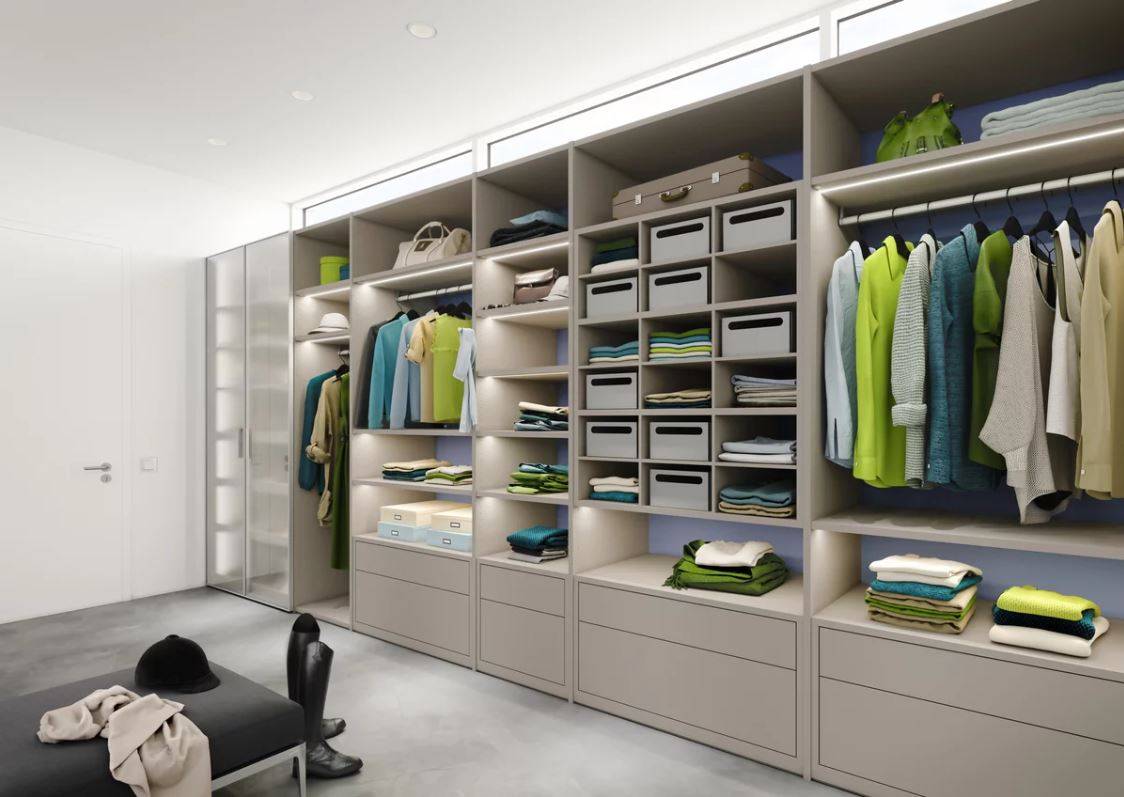 Многообразные части для хранения в больших шкафах могут быть разделены перегородками. Большинство моделей обходятся без внутренних текстильных стенок.