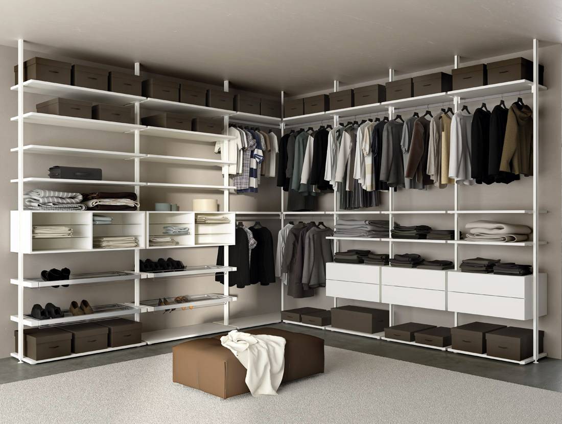 Большие модульные системы подходят для создания отдельной гардеробной комнаты. Обладают неоспоримым достоинством — они очень вместительны. Могут быть установлены возле каждой стены помещения. Шкафы собираются из отдельных модулей, которые легко комбинировать между собой. В комплекте бывают мебельные острова с выдвижными ящиками и зеркалами.