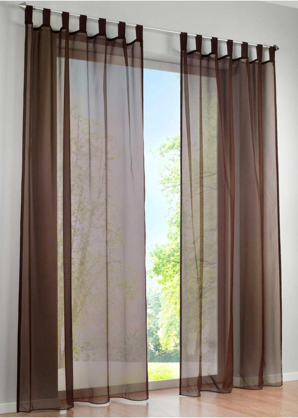 Коричневая вуаль не петлях — отличный вариант для спальни с балконом