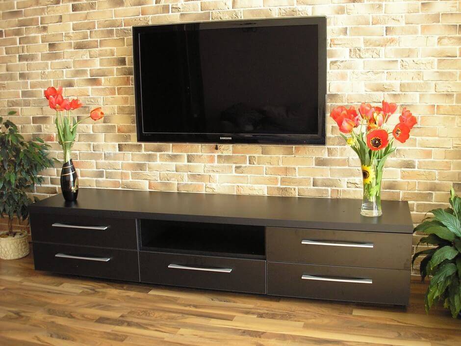 Конструкции длинных тумб можно разделить на два типа, это напольные и подвесные. Классическим вариантом являются напольные тумбы, которые устанавливаются на нижнюю опору. Такой опорой могут служить специальные ножки с роликами, для удобства перемещения. У некоторых моделей есть регулируемые ножки. Есть тумбы, нижней частью которой выступает цоколь. Напольные модели тумб для телевизора являются прочными, удобными в установке, долговечными и способны выдерживать значительные нагрузки.