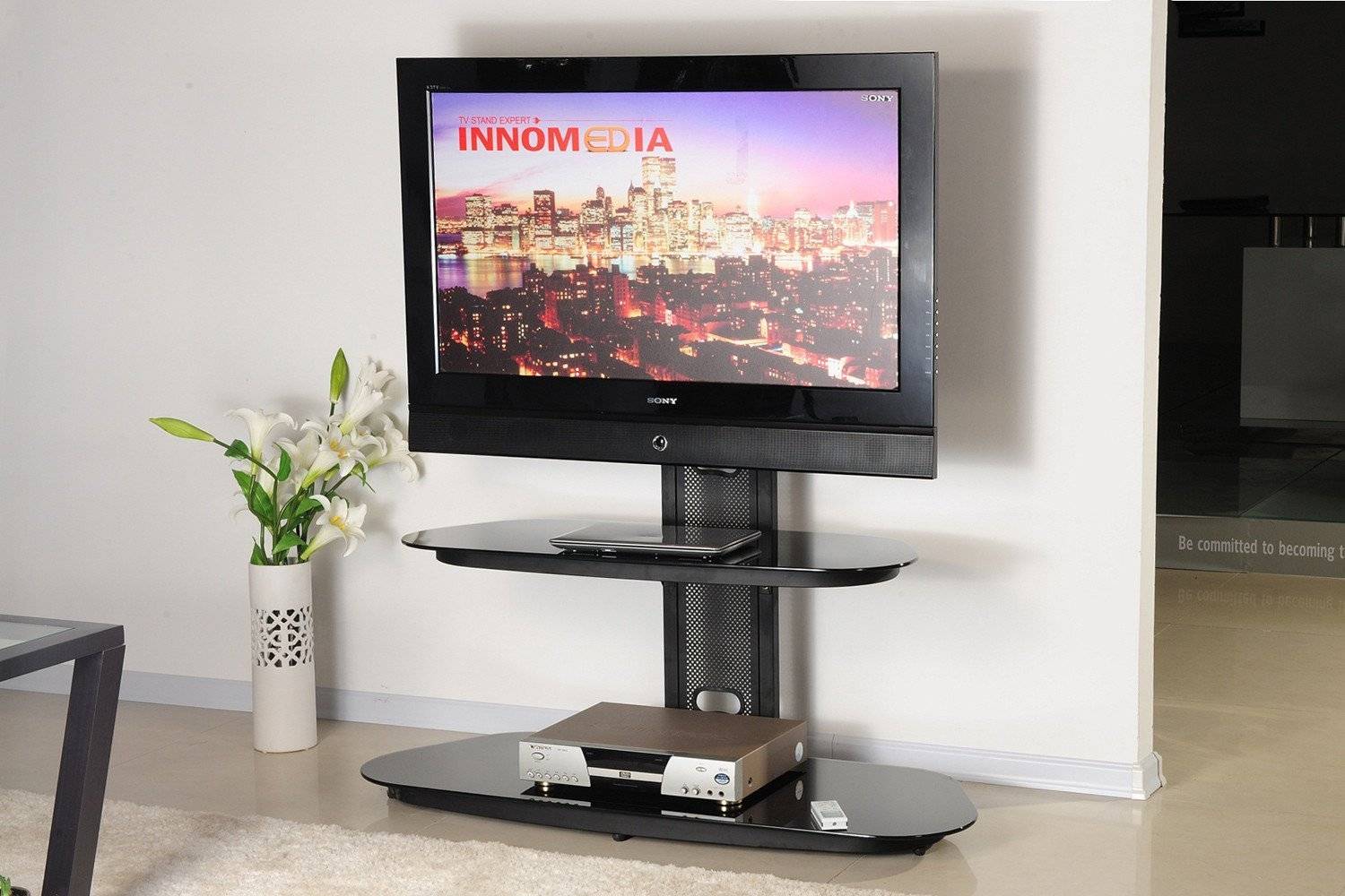 Пожалуй это самый распространенный и практичный вариант — такие подставки могут быть самых различных форм и цветов, эффектно выглядят и снабжены удобными полками для предметов и дополнительной техники.