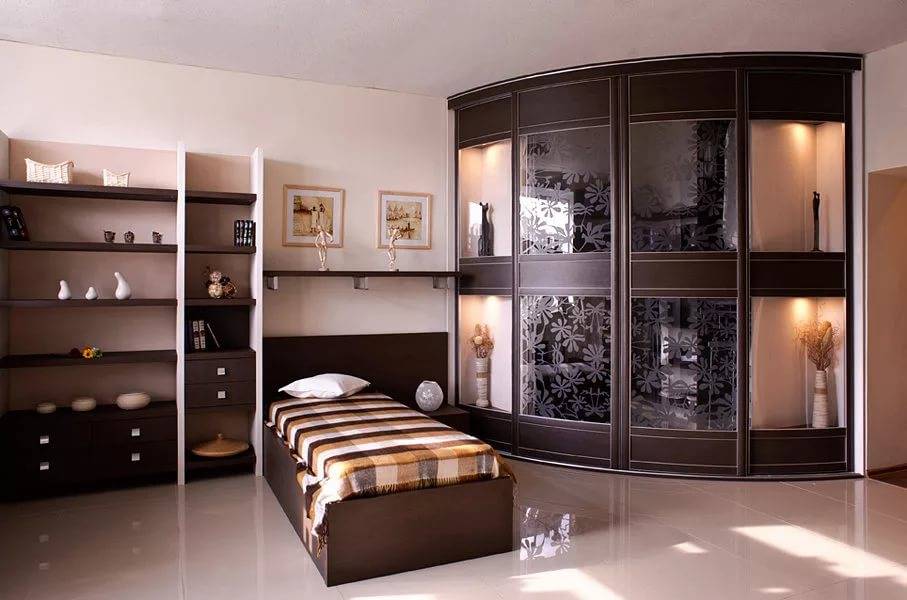 Некоторые модели имеют даже встроенные раскладные кровати, и прочие предметы мебели. Такие вариации больше подойдут для совсем маленьких спален.