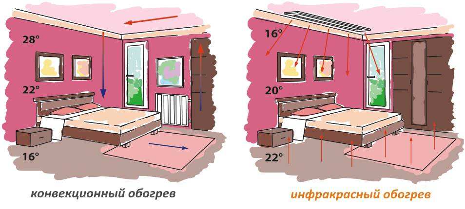 - в частных случаях, когда требуется прогрев воздуха в помещении, инфракрасные устройства не помогут;