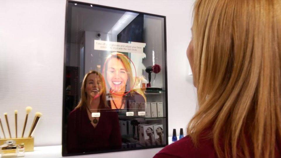 - Например, детище швейцарских программистов – зеркало Mirror. Девайс устанавливается непосредственно в примерочной вместо традиционной отражающей поверхности. При приближении посетителя, на экран выводится приветственное сообщение с объяснением принципа работы устройства. После сканирования товара зеркало отображает его полноценную презентацию, выдает все подходящие дополнительные аксессуары и сопутствующие продукты.