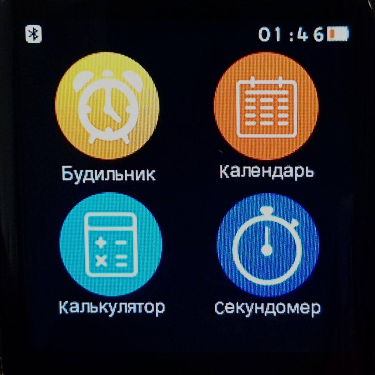 - Стандартные функции часов: хронометраж времени, будильник, секундомер.