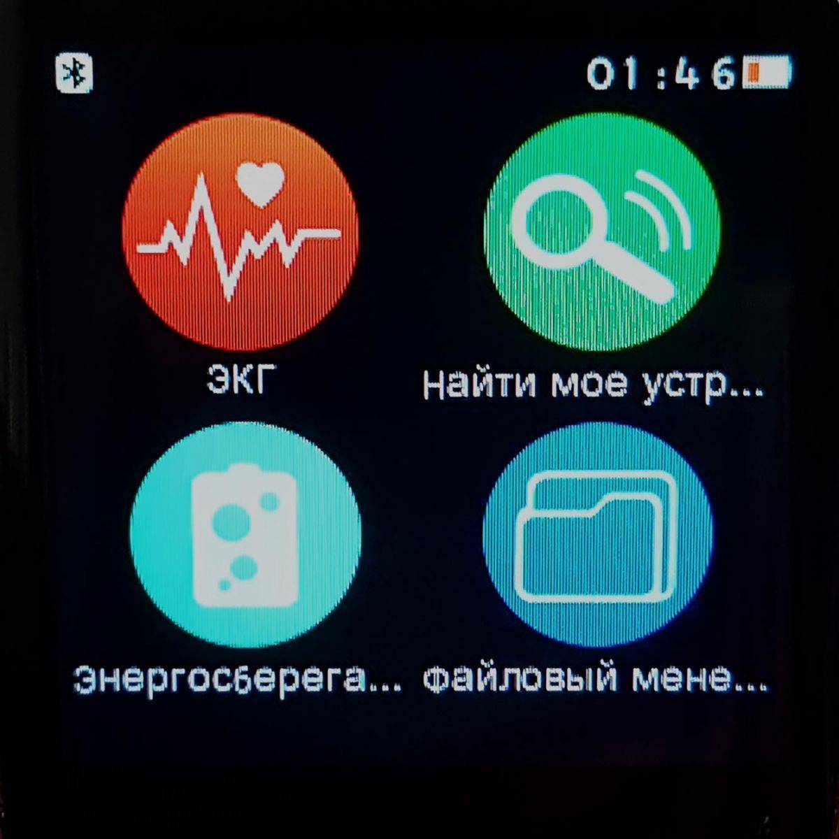 Для связи с телефоном необходимо включить Bluetooth, найти который можно листая экран влево. После того, как Bluetooth в часах включен, нужно то же самое сделать в смартфоне: Меню – Настройки – Bluetooth – выбрать Smart Watch Q18 – включить.