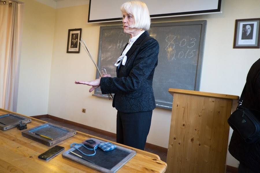 Инесса Савельевна рассказывает много интересного про организацию уроков в старой немецкой школе. Тогдашние реалии разительно отличаются от привычного нам учебного процесса. К примеру, если школьник хотел ответить по теме занятия или задать вопрос, то поднимал вверх указательный палец, а не руку.