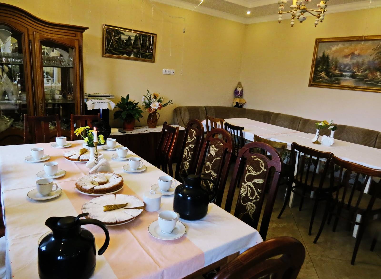 По завершении экскурсии Инесса Савельевна приглашает гостей выпить по кружечке чая, попробовать традиционные немецкие пироги и, конечно, знаменитый штрудель. Можно приобрести эксклюзивные сувениры, сделанные специально для музея. Например, точную копию немецкой тарелки из фарфора, предназначенной для изучения алфавита. На тарелке видны изображения букв, которые ребенок читал перед едой.