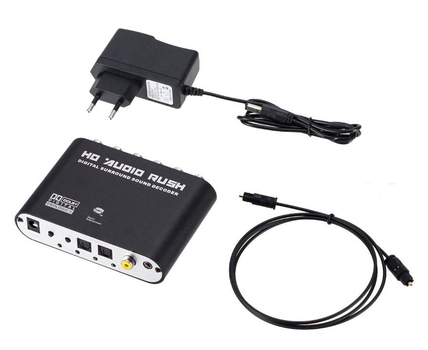 Видео с примером подключения аудиосистемы 5.1 через цифро-аналоговый преобразователь, совместно с TV-приставкой можно посмотреть ниже.