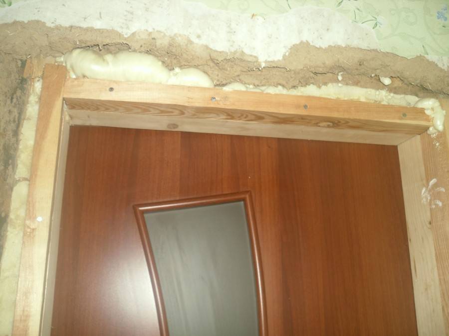 После запенивания пространства дверь желательно оставить закрытой на сутки. В покое не произойдет деформаций, а картон, проложенный между коробкой и полотном, сохранит зазоры, не позволит выгнуться брусу при распирании пены.