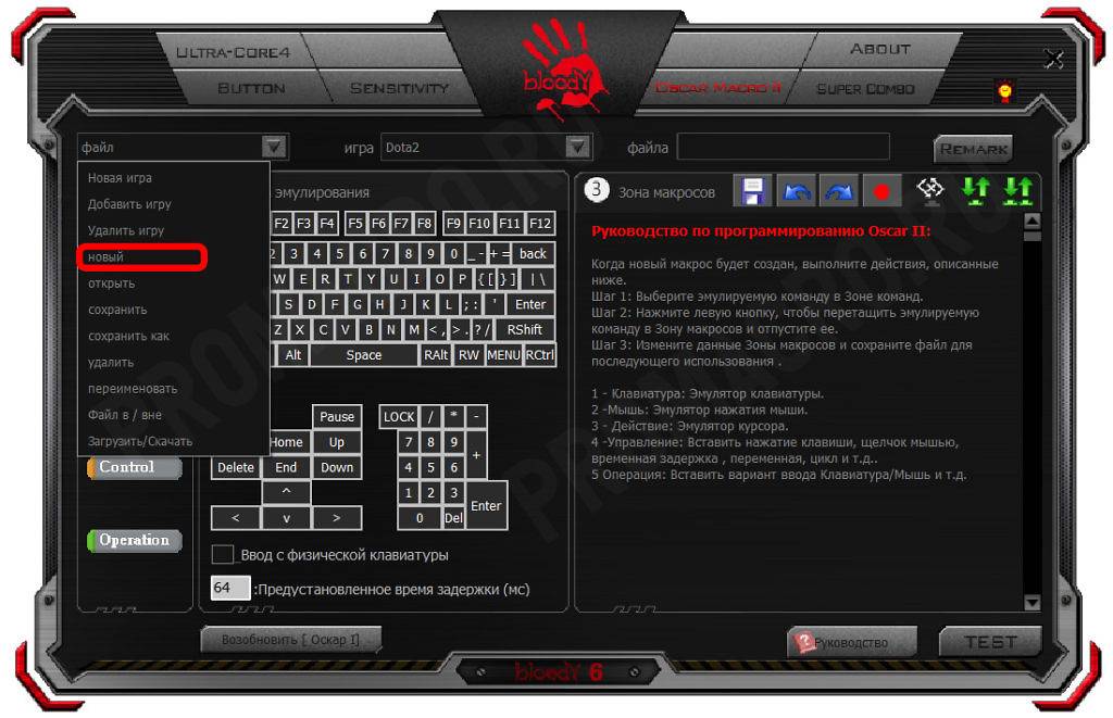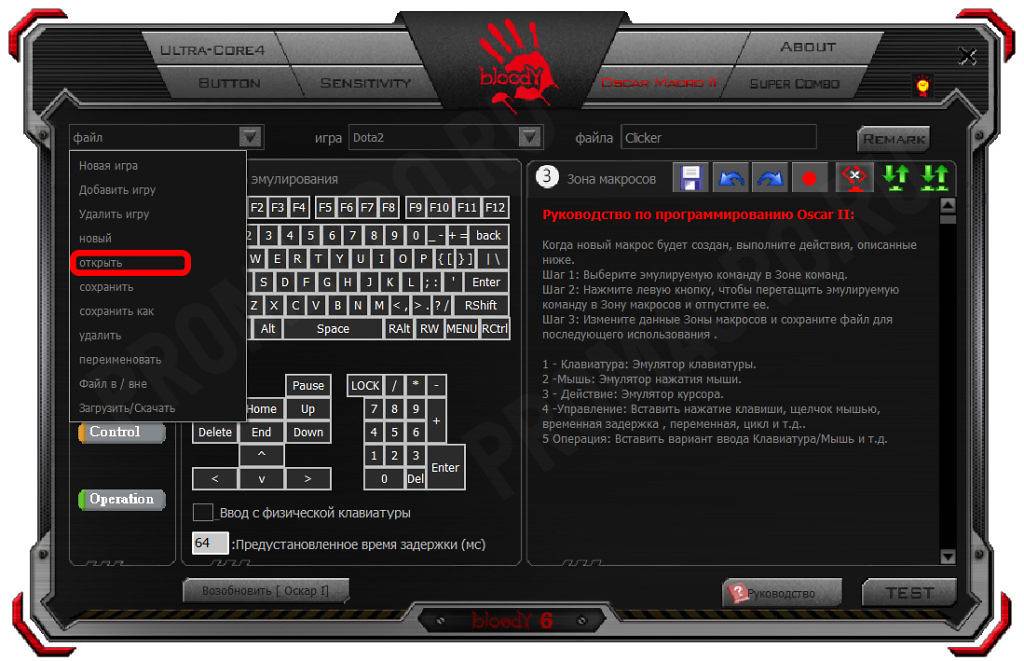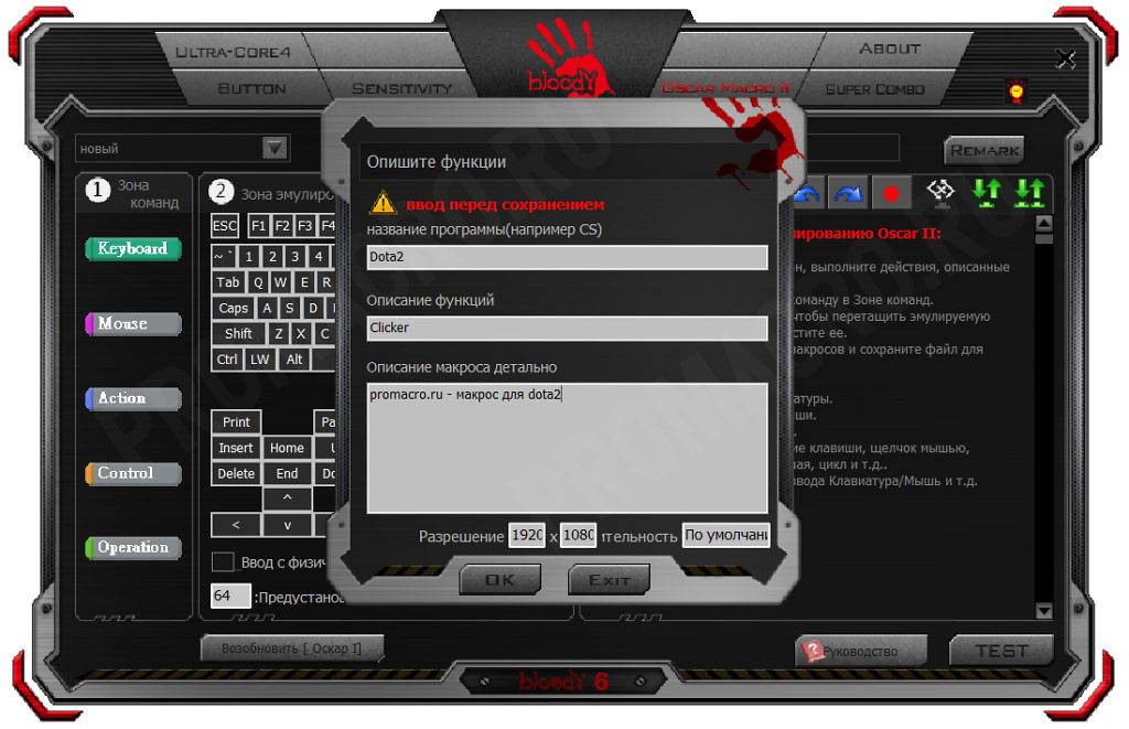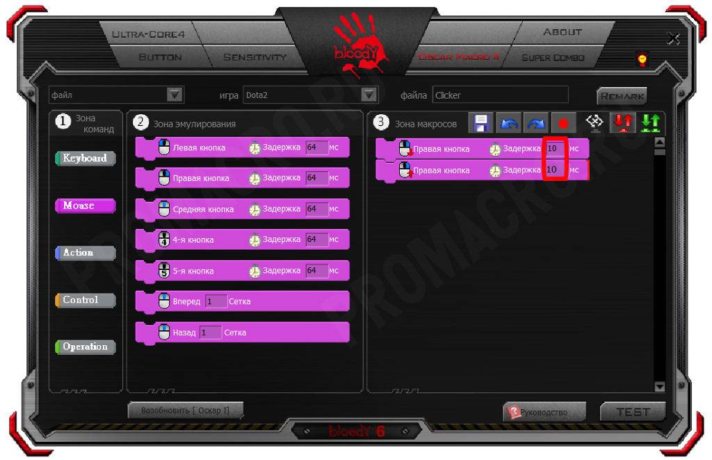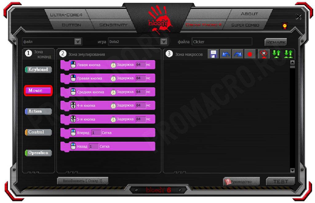 Создание макроса в программе Bloody.
