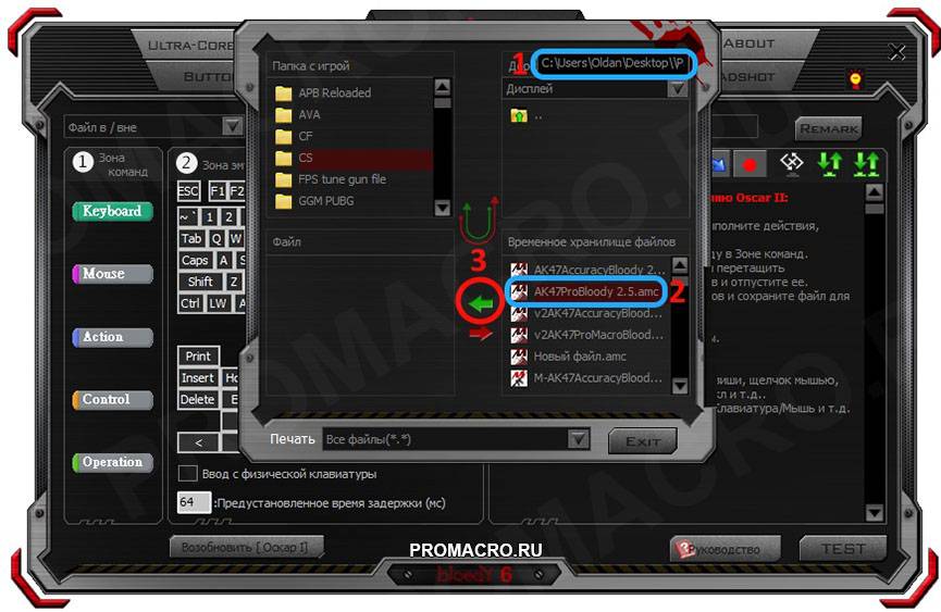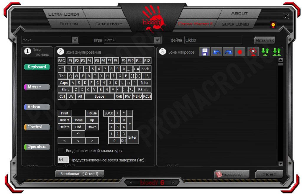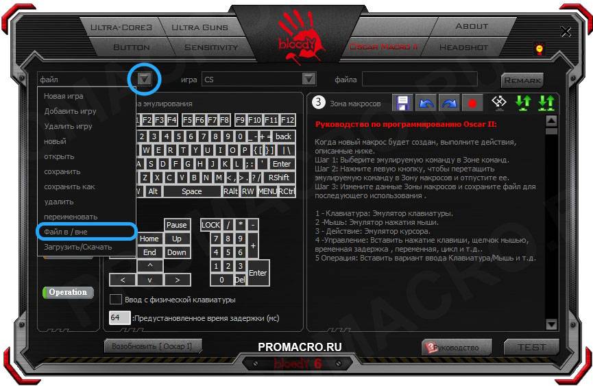 Заходим в программу Bloody и открываем вкладку Oscar Macro.