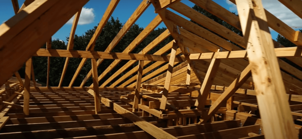 Он становится основой для разметки и возведения деревянного каркаса. Деревянные элементы могут собираться на месте или доставляться модулями.
