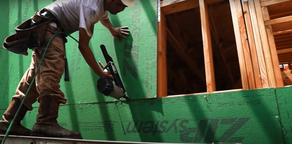 Каркас из тонких дощечек обшивают листами ДСП или фанеры. Изнутри обшивка чаще гипсокартонная. Между наружной и внутренней обшивкой прокладывается утеплитель. Как правило, это минеральная вата. Снаружи дом облицовывают сайдингом или тонким кирпичом. Хотя на кирпиче обычно экономят: если и облицовывают им наружные стены, то либо только цоколь, либо полностью, но лишь фасад дома. На крыше — рубероид, который часто сносит.